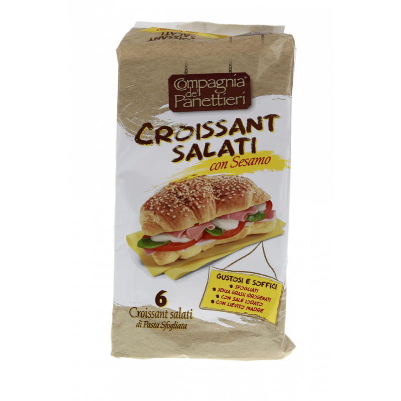 Farina di frumento, margarina vegetale (grasso di parlma e olio di girasole, acqua, sale, emulsionanti: lecitine (da soia) - mono e digliceridi degli acidi grassi), uova, zucchero, acqua, burro (latte), lievito madre 2,3% (frumento), sciroppo di glucosio, sesamo 2,2%, emulsionante mono e digliceridi degli acidi grassi, sale iodato 0,9% (sale marino essicato, potassio iodato 0,0051% - 24+42ppm di iodio), tuorlo d'uova, latte scremato in polvere, aromi naturali. Può contenere tracce di arachidi, frutta a guscio e sesamo.