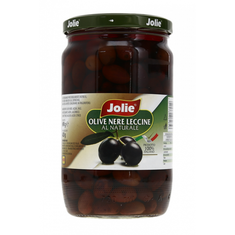 Olive nere, acqua, sale, antiossidante: acido L-ascorbico. Correttore di acidità: acido citrico.