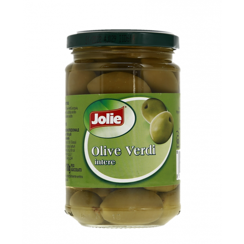 Olive verdi, acqua, sale, regolatore di acidità: acido lattico, antiossidante: acido ascorbico.