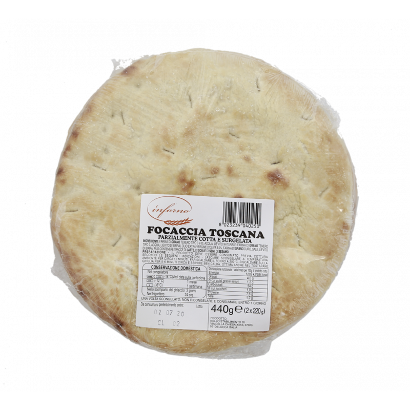 Farina di grano tenero tipo 0 e 00, acqua, lievito naturale (farina di grano tenero tipo 0, acqua, lievito di birra), olio extra-vergine d'oliva 3,5%, farina di grano duro, sale, lievito di birra.