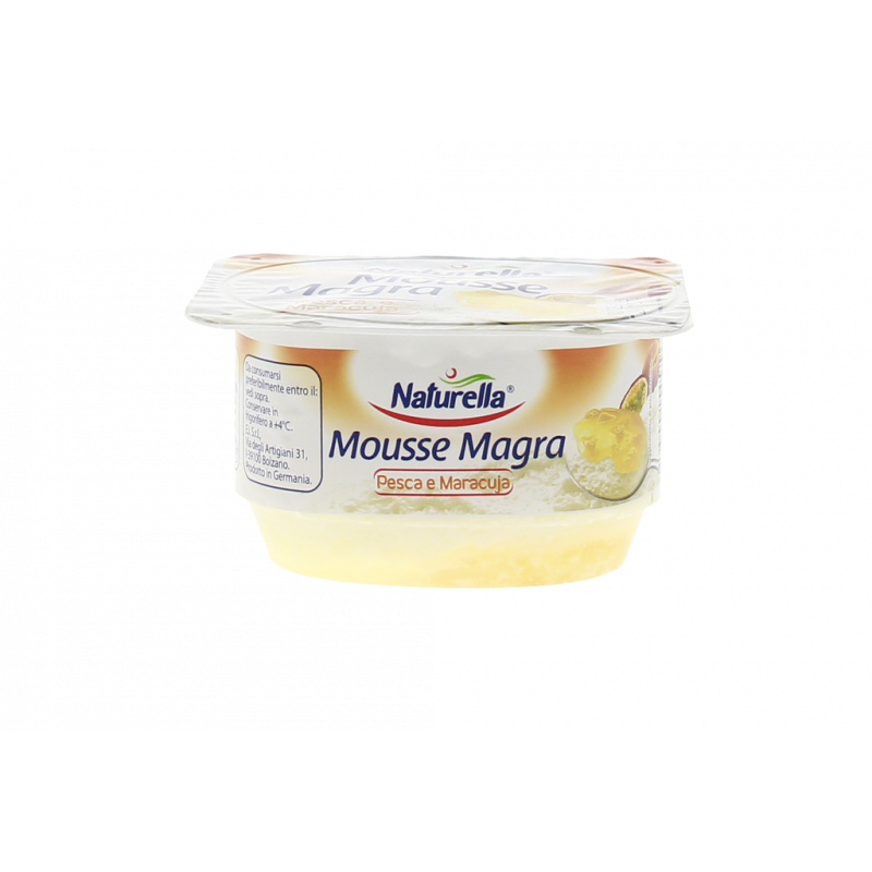 Formaggio fresco leggero quark, preparazione di frutta 15% ( pesca par al 6% sul prodotto finito, zucchero, succo di pesca da concentrato pari al 2% sul prodotto finito, succo di maracuja da concentrato pari all'1% sul prodotto finito, sciroppo di glucosio-fruttosio, amido modificato di mais, addensanti: pectina, gomma di guar, estratto di cartamo con potere colorante, correttori di acidità: acido citrico, citrati di calcio, citrati di sodio; aroma), sciroppo di zucchero invertito, latte fermentato, crema di latte, zucchero,gelatina, amido modificato di mais, addensanti: gomma di guar, farina di semi di carrube, aroma, correttore di acidità: acido lattico; montato con azoto.
