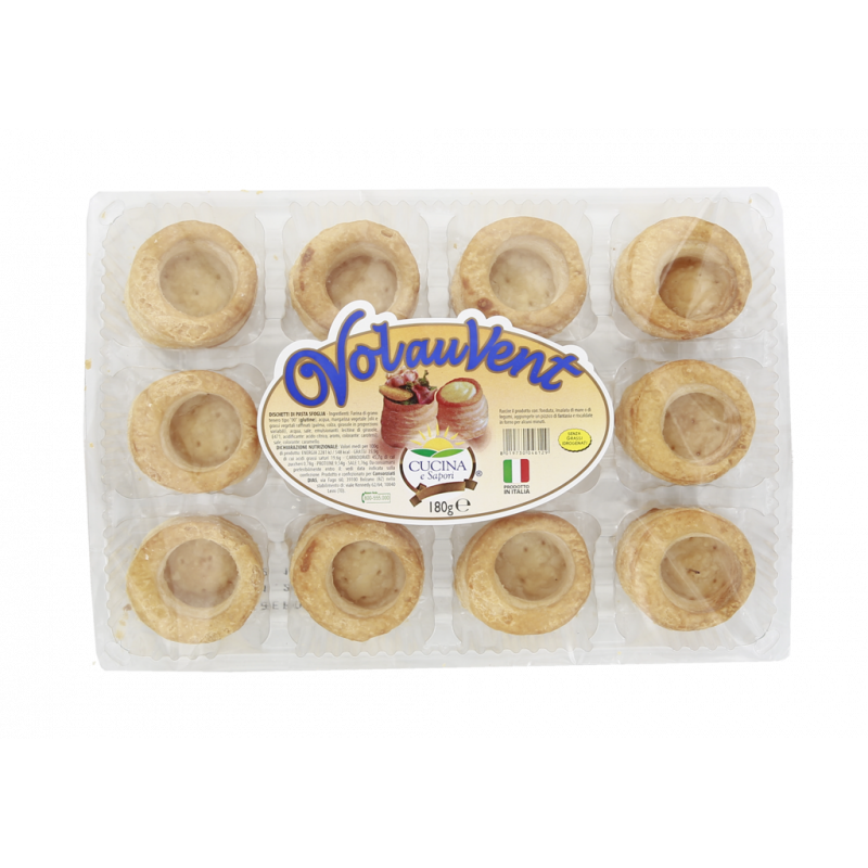 Farina di grano tenero tipo "00" (glutine), acqua, margarina vegetale (olii e grassi vegetali raffinati (palma, colza, girasole in proporzioni variabili), acqua, sale, emulsionanti: lectine di girasole, E471, acidificante: acido: acido citrico, aromi, colorante: caroteni), sale, colorante, caramello.