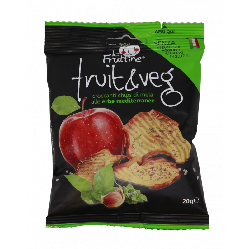 Mela 94%, miscele di erbe aromatiche mediterranee in proporzione variabile 4% (aglio, basilico, paprika, origano), pomodoro, sale 2%, Vitamina C.