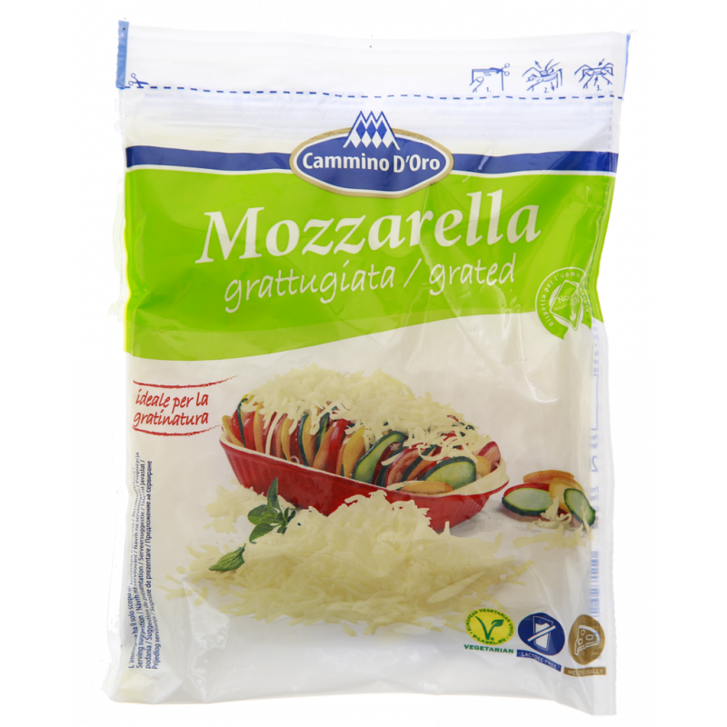 Mozzarella (latte pastorizzato, sale, caglio microbico, fermenti lattici), 1.8% amido.Naturalmente priva di lattosio, Lattosio <0.1 g per 100 g