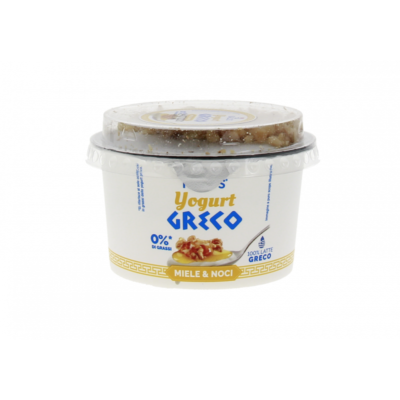 yogurt 75% (latte. scremato, crema di latte,fermenti lattici vivi S. Thermophilus e L¿ Bulgaricus) , miele 19% (miscela di mieli originari della UE), noci 6%. contenere tracce di attra frutta a guscio e arachidi