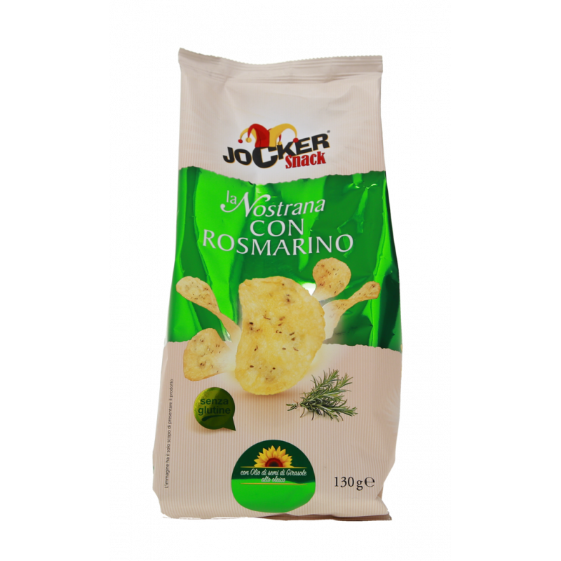Patate, olio di semi di girasole alto oleico 23%, sale iodato 1% (sale, iodato di potassio 0.007%, rosmarino in polvere 0,5%. Senza glutine.