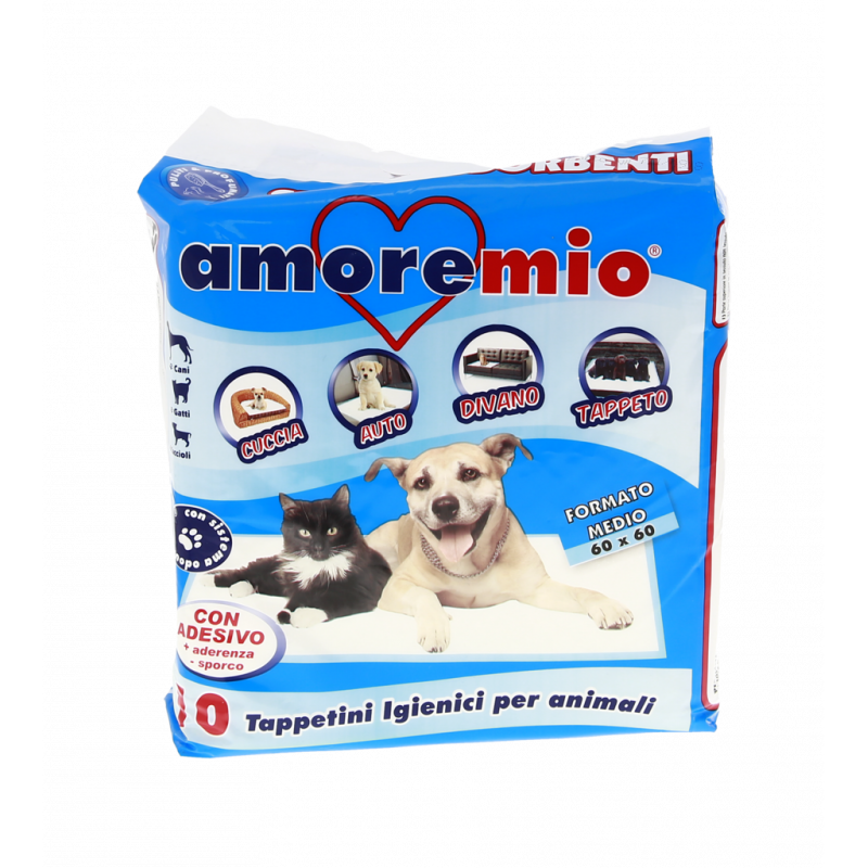 - Tappetino super assorbente con polimeri Odor Control. Parte superiore in morbido telino TNT (tessuto non tessuto) Parte intema in cellulosa vergine a fibra lunga e polimeri super assorbenti Odour Stop @ Parte inferiore in polietilene atossico impermeabile.